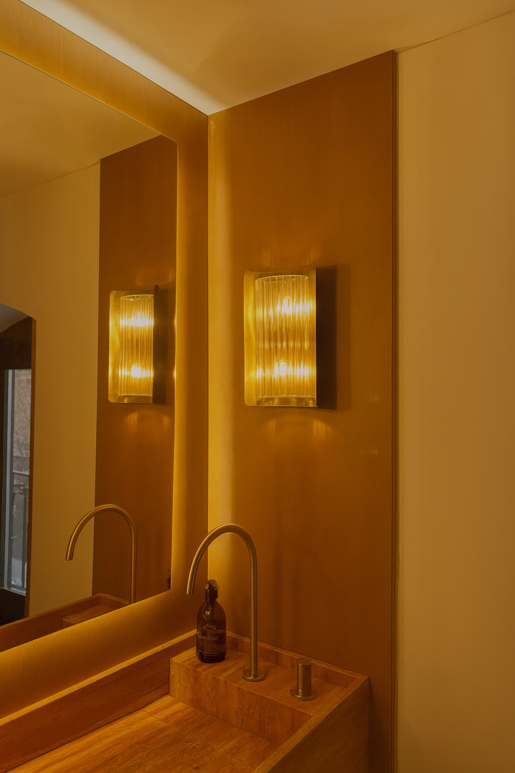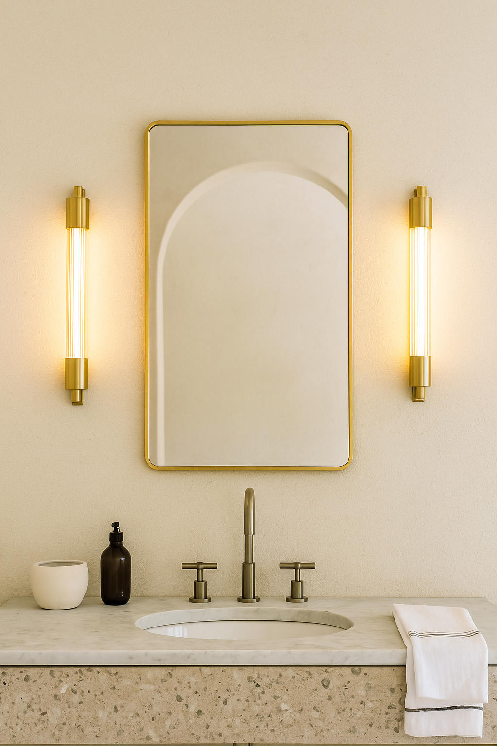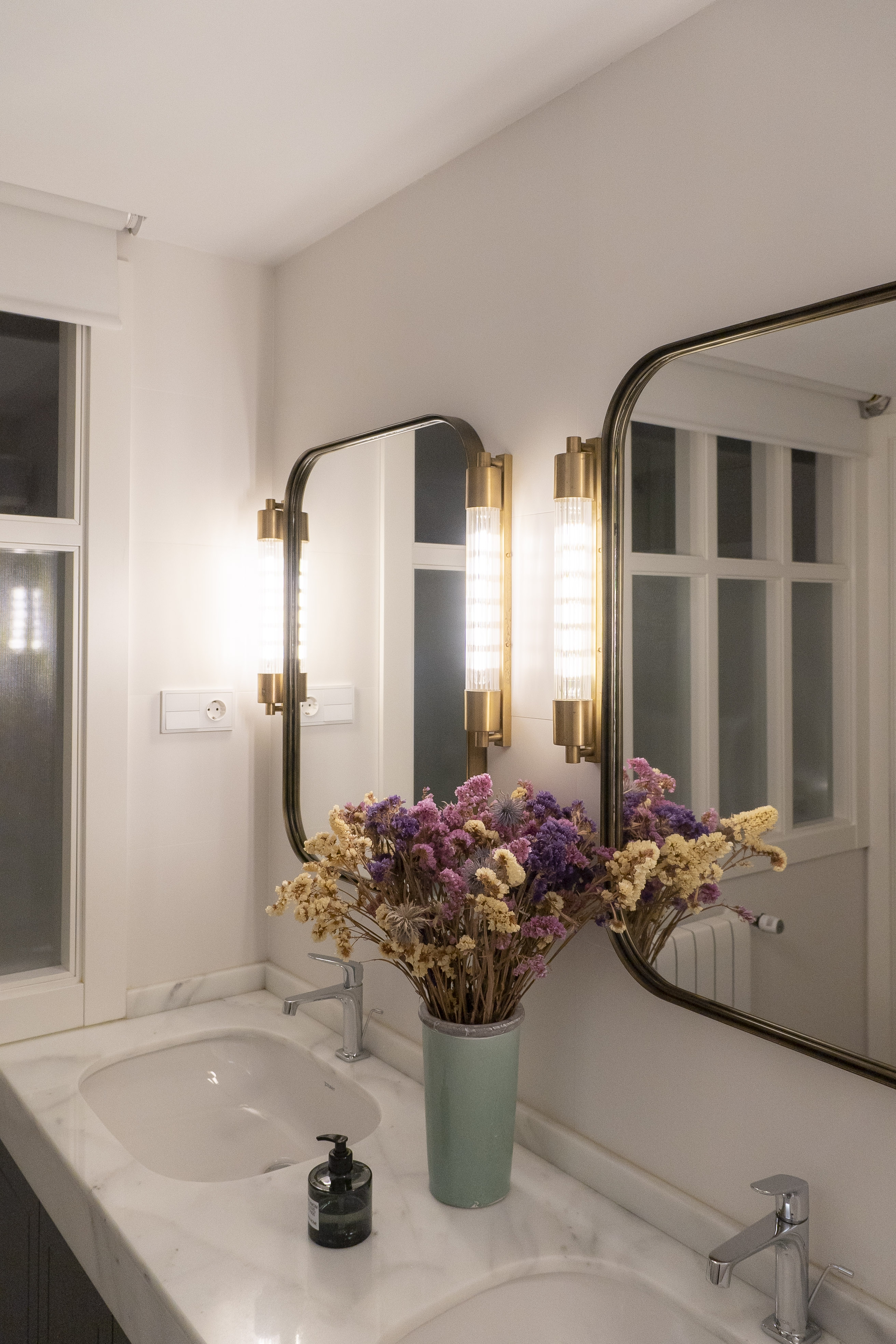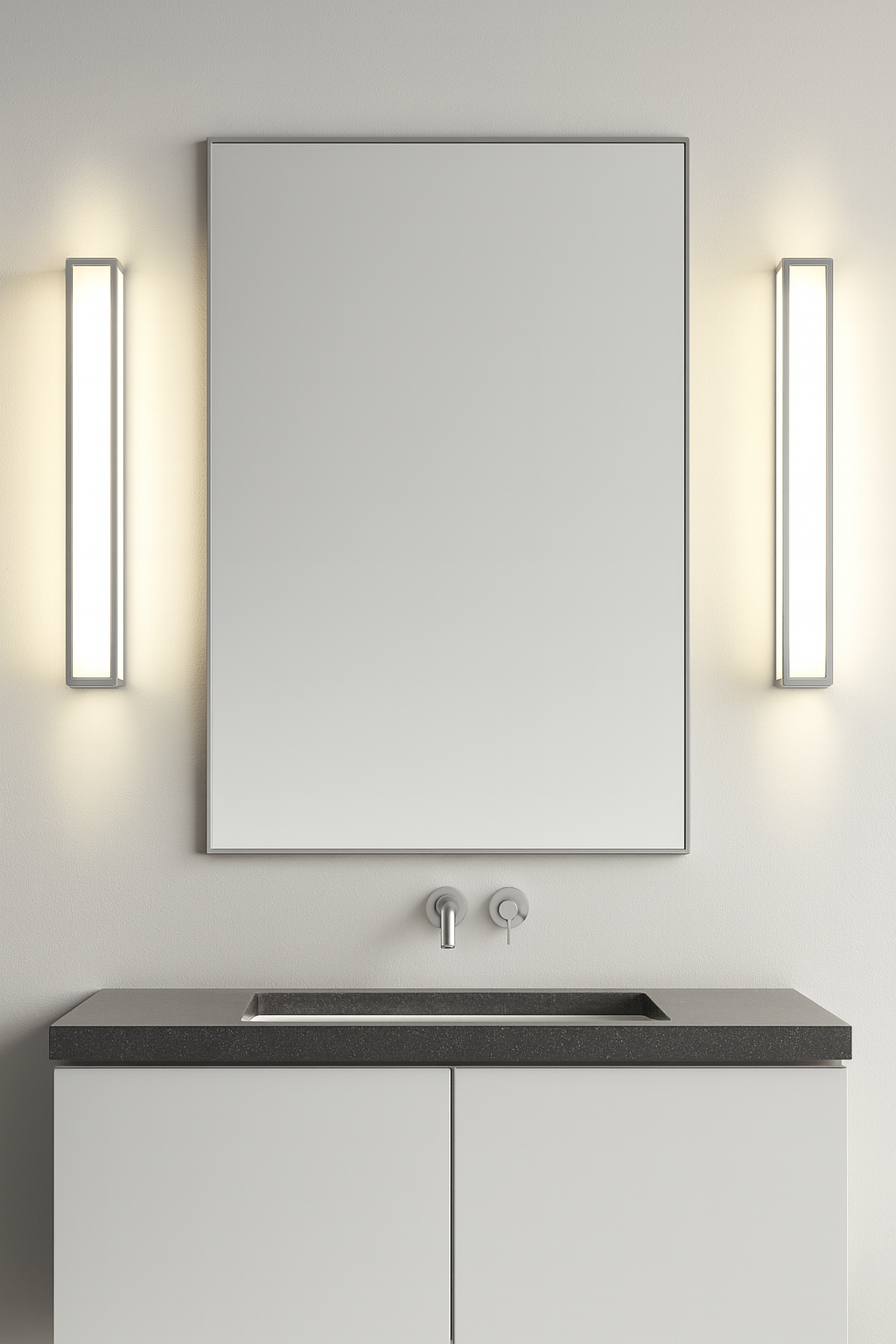 La posición de los apliques es tan importante como el tipo de luz. Lo ideal es instalar dos luminarias a los laterales del espejo, aproximadamente a la altura de los ojos. De esta forma, la luz incide de manera equilibrada sobre el rostro, eliminando las sombras que generan los focos cenitales (colocados en el techo) y proporcionando un efecto mucho más natural.