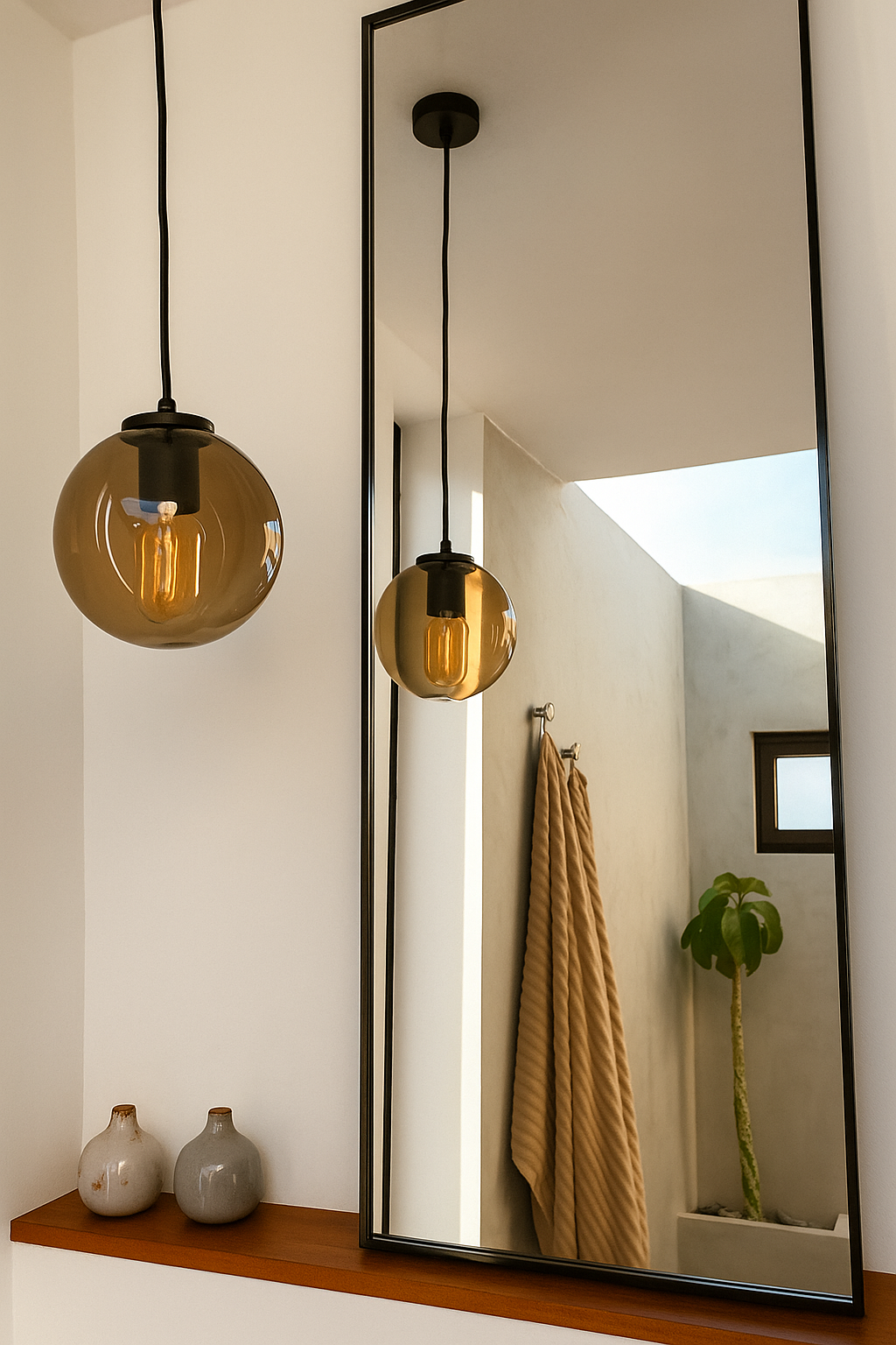 En D-LUZ diseñamos luminarias decorativas que combinan estética y confort visual. Apostamos por una iluminación funcional, equilibrada y artesanal, pensada para resaltar la belleza de cada espacio —incluido el baño— sin renunciar a la calidez del diseño.