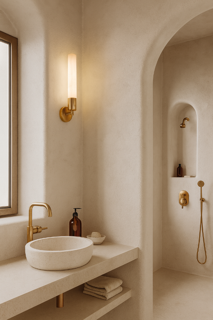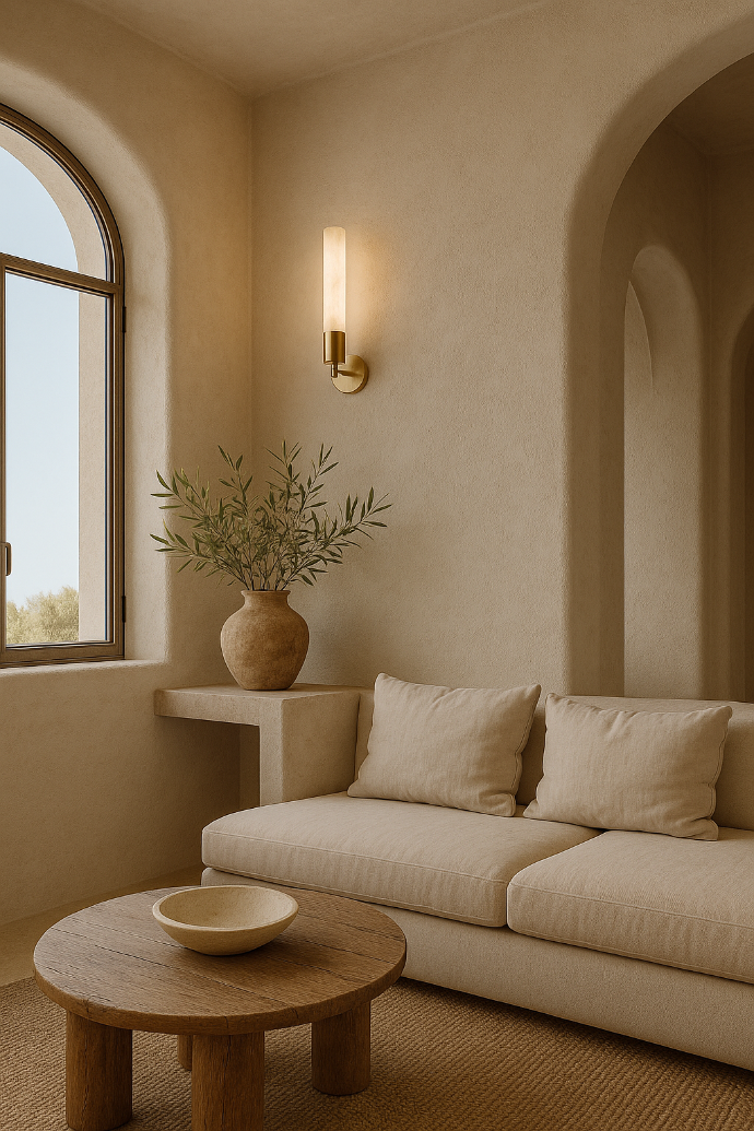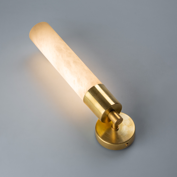 Aplique de pared de iluminación general fabricado con cilindro de alabastro y latón.