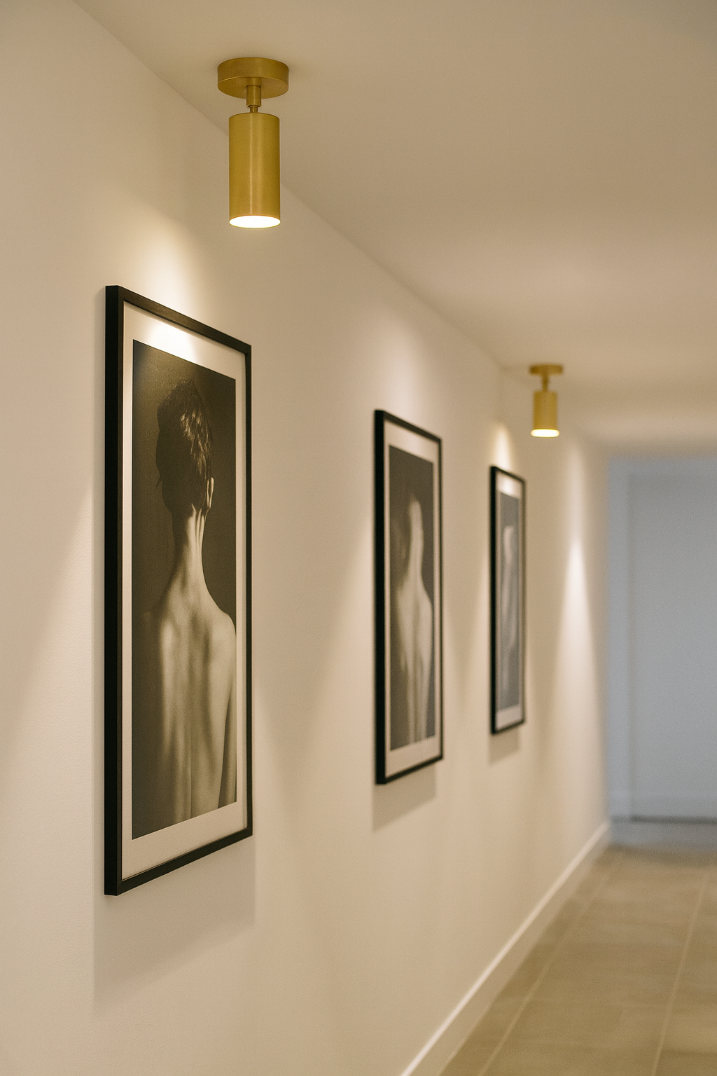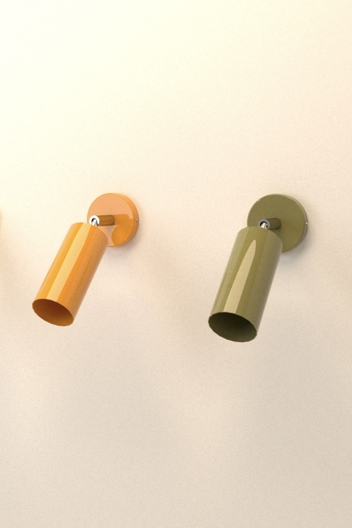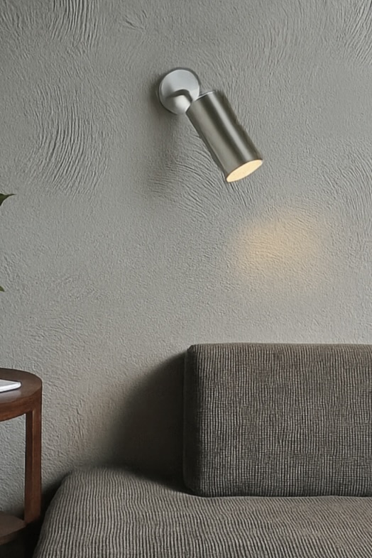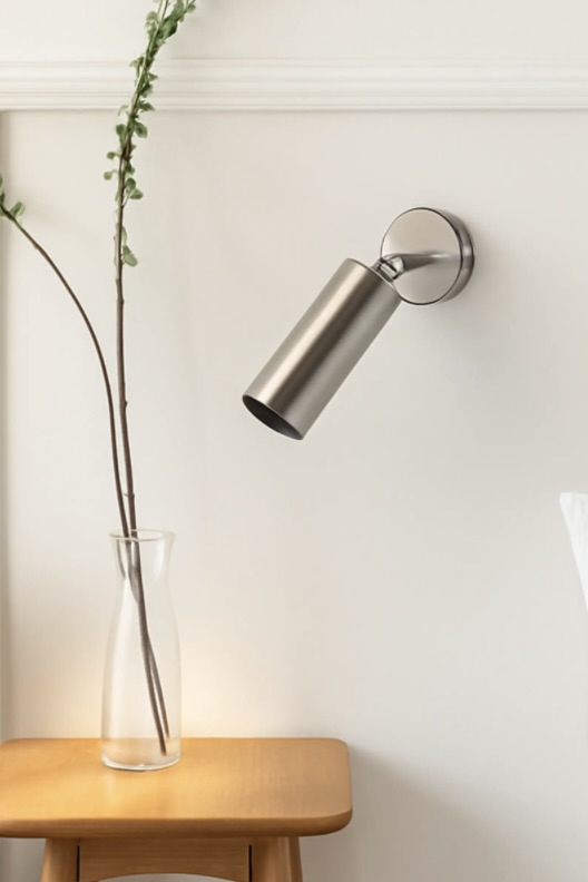 Aplique tubular de iluminación focal con rótula para focalizar la luz.